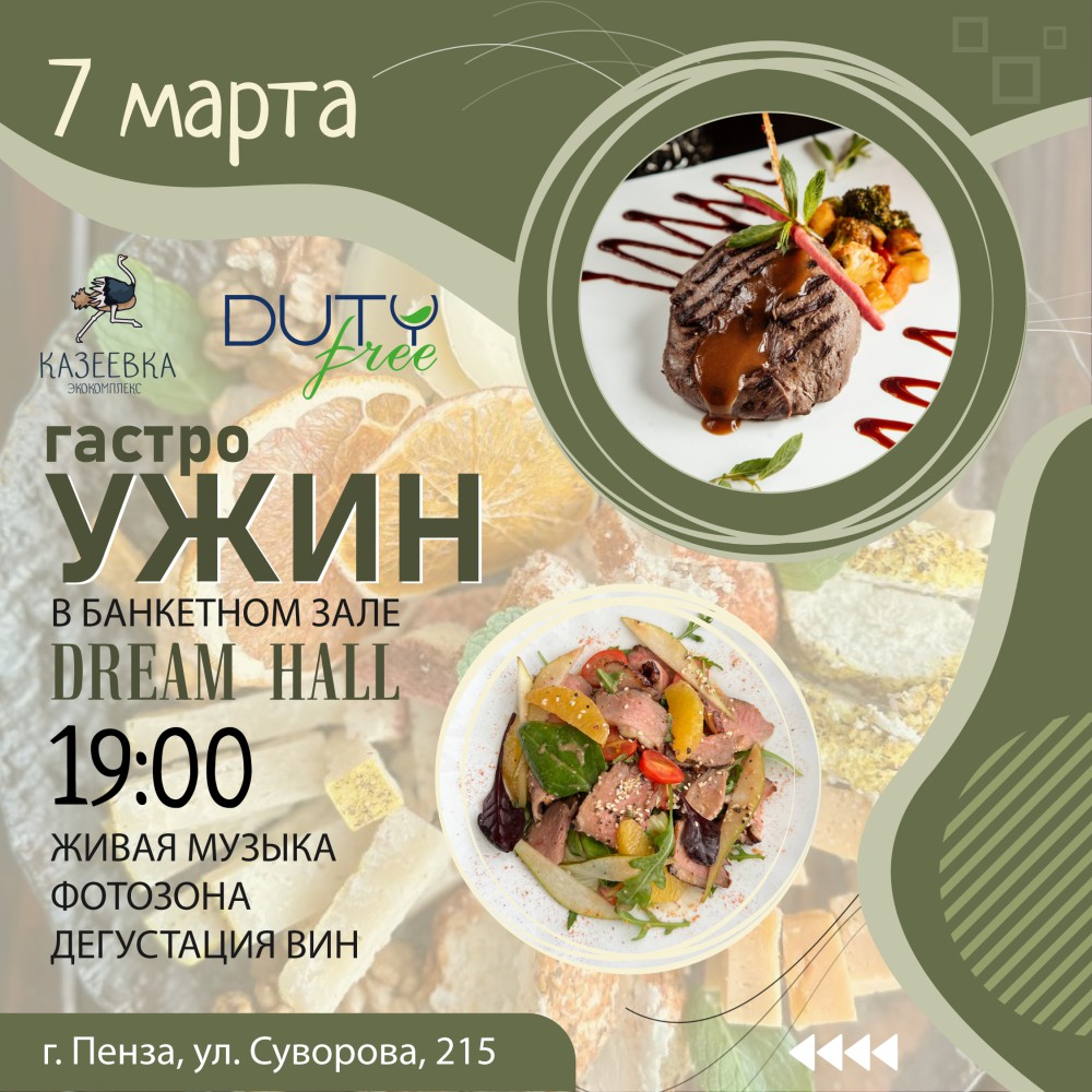 7 марта в 19:00 мы приглашаем вас на гастрономический ужин!