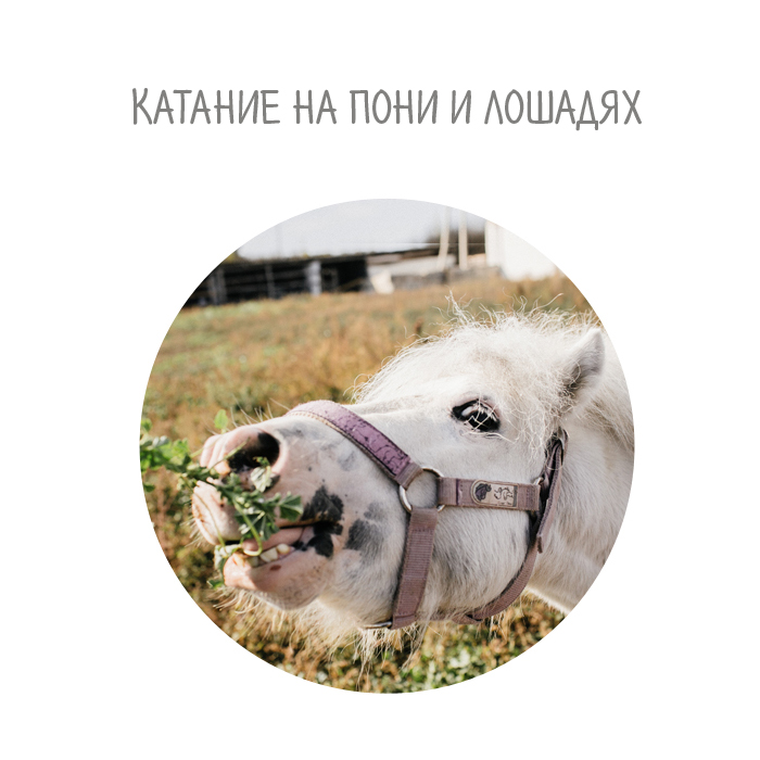 - Катание на пони и арабских скакунах у живописного водоема на территории комплекса.