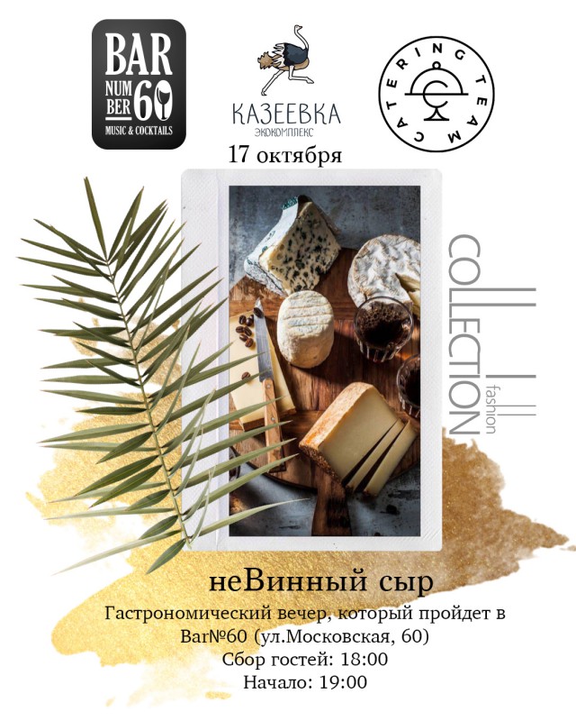 17 октября в BAR No60 (ул. Московская,60) состоится ужин-дегустация «НеВинный Сыр» от экокомплекса «Казеевка» при участии BAR No60 @bar_60, Catering Team @catering_team, журнала Fashion Collection @fc58ru.