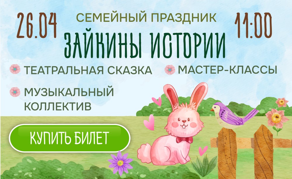 Театральная постановка «Зайкины истории», где мы прикоснемся к персонажам из любимых сказок. Наши маленькие гости познакомятся со смешной гусеницей и настоящим Михаилом! Вместе с зайками изучим лесные ягодки и сварим вкусное и сладкое варенье. Подскажем лесным насекомым, как найти их домики. А главное, научимся верить в сказки и делать добрые дела!