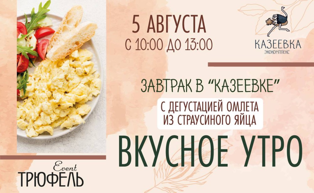 5 августа с 10.00 до 13.00 вас ждёт ВКУСНЫЙ ЗАВТРАК В "КАЗЕЕВКЕ"!